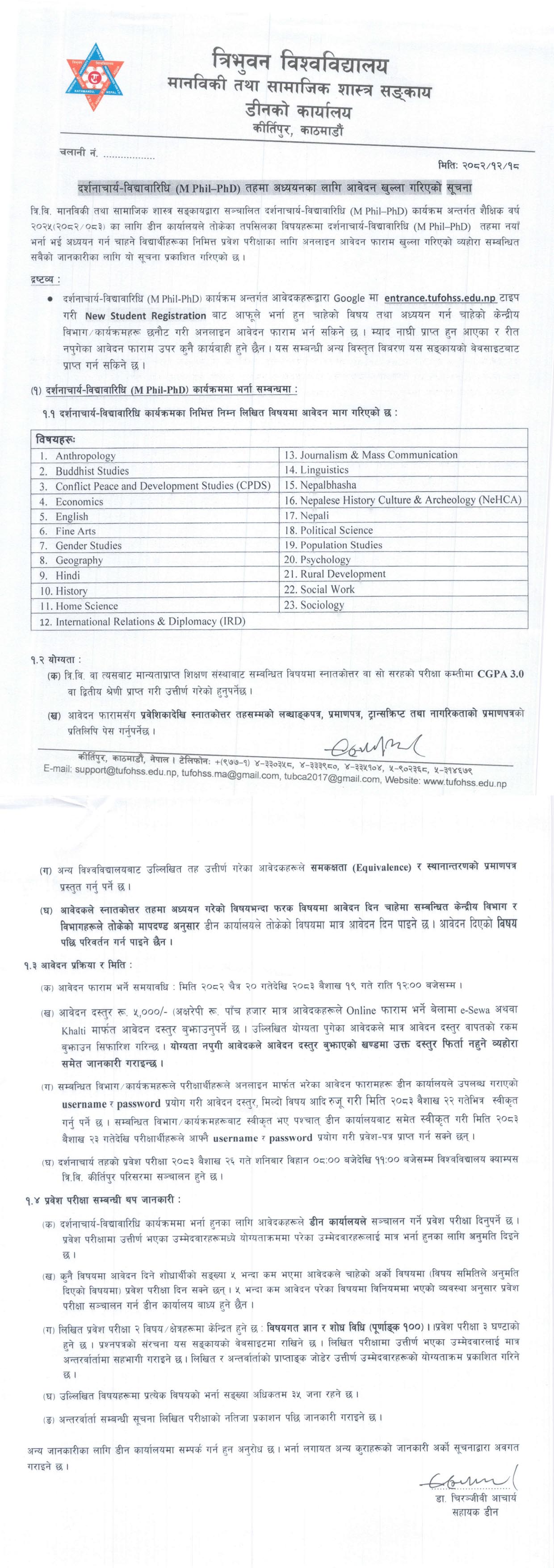 आवेदन दर्ताका लागि यस लिङ्कमा जानुहोस् https://entrance.tufohss.edu.np